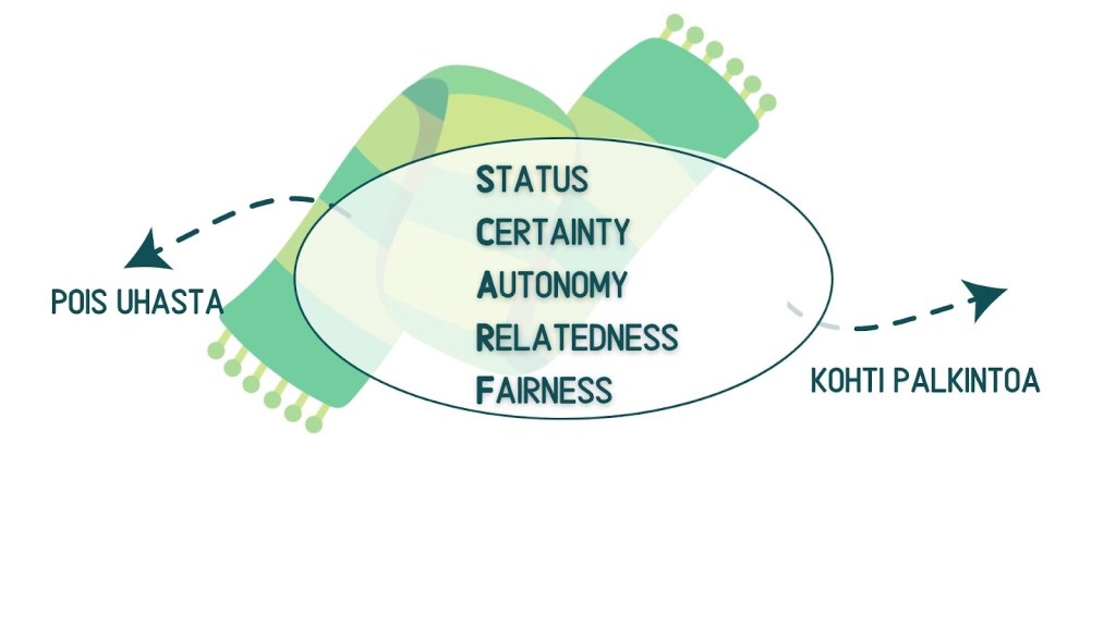 David Rockin (2008) kehittämä SCARF-malli on kehitetty sosiaalisen vuorovaikutuksen ja motivaation ymmärtämiseen. Malli perustuu neurotieteen havaintoihin, joissa huomattiin että aivot käsittelevät sosiaalista informaatiota samalla tavalla kuin ne käsittelevät muita perustarpeita, kuten nälkää tai janoa. Aivot eivät siis osaa erottaa fyysistä uhkaa ja palkkiota, sosiaalisesta uhkasta tai palkkiosta.Kun ihminen kokee uhkaa tai epävarmuutta sosiaalisessa vuorovaikutuksessa, aivoissa tapahtuu samanlaisia reaktioita kuin fyysisen uhan tai stressin yhteydessä.